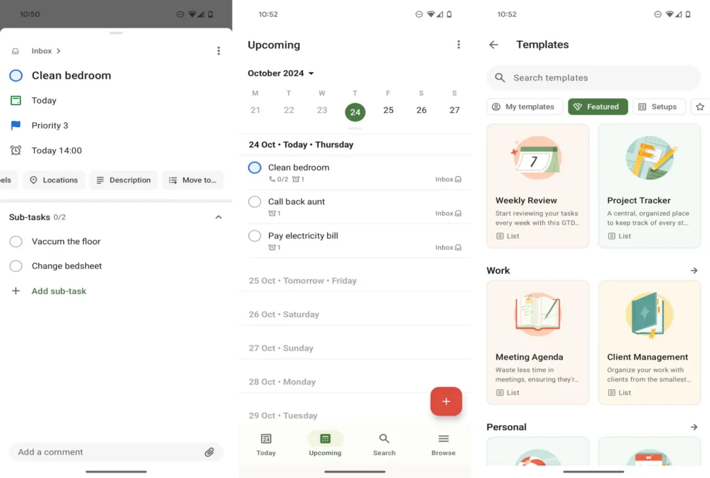 The interface stays clean even as tasks build up and priority levels make it easier to focus on what actually needs attention.